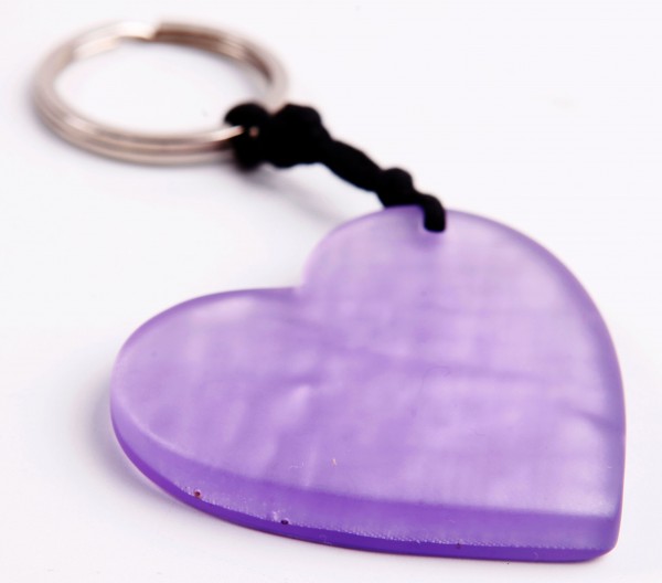 RESIN KEYRING W/ METALLIC FABRIC “HEART”